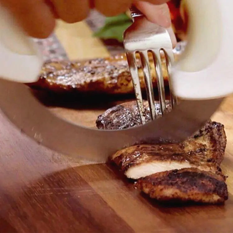 MORE FUNNY: it runs along the entire circumference of the handle, allowing you to roll it on the cutting board like a toy unicycle. A knife that rolls easily through your food, giving you precision cutting and incredible power, all in one motion. Perfect dicing, slicing, chopping and mincing each and every time. This knife will quickly become your new favorite companion in the kitchen