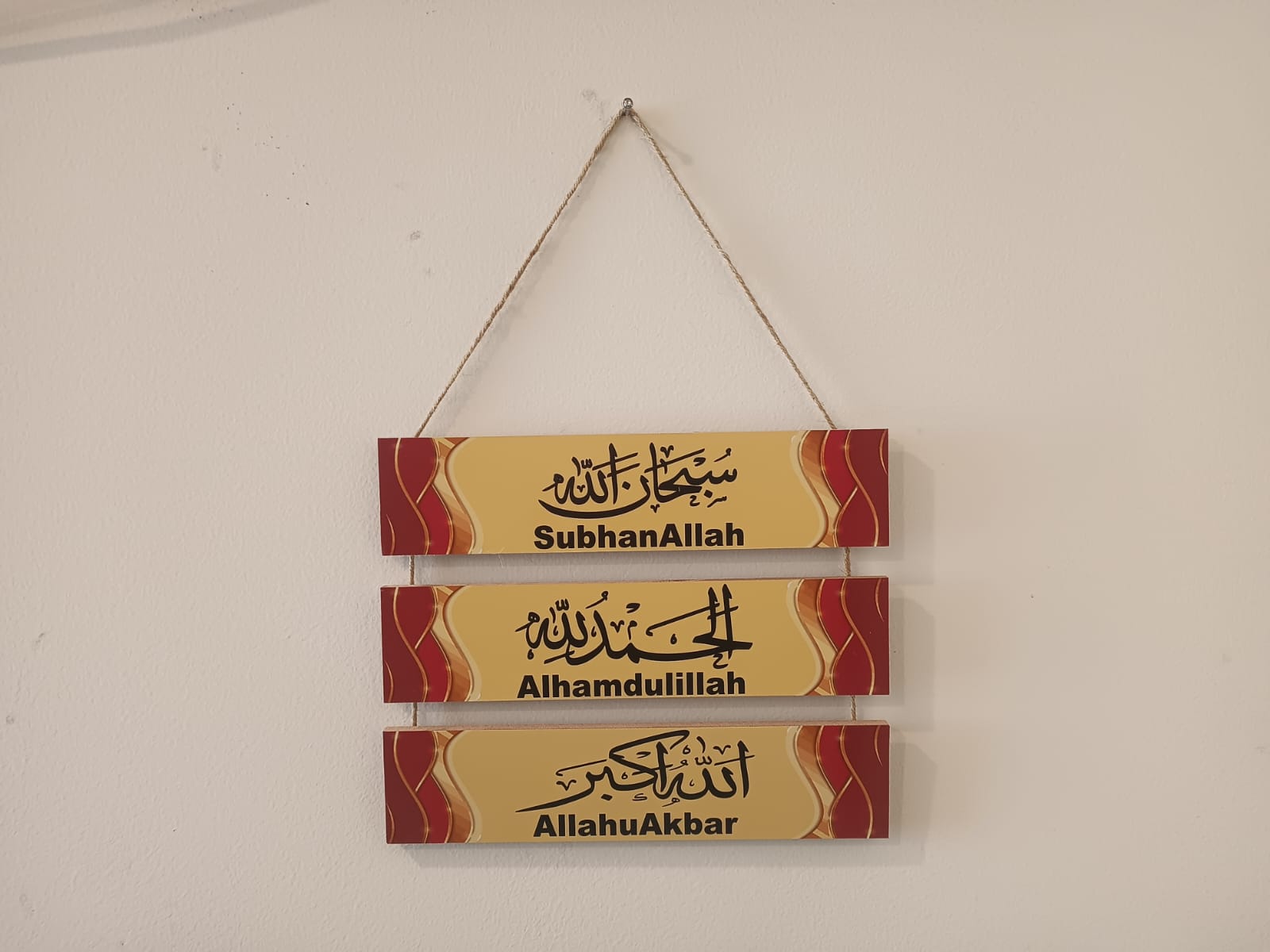 Islamic tasbeeh 3 step wooden wall hanging for home decoration